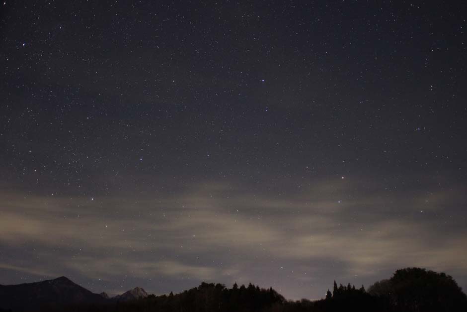 朝3時、所々に雲が残っていましたが、上弦の月あかりがあるものの、星空はきれいでした。