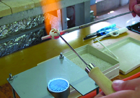 卓上バーナーでガラス棒を熔かして作る